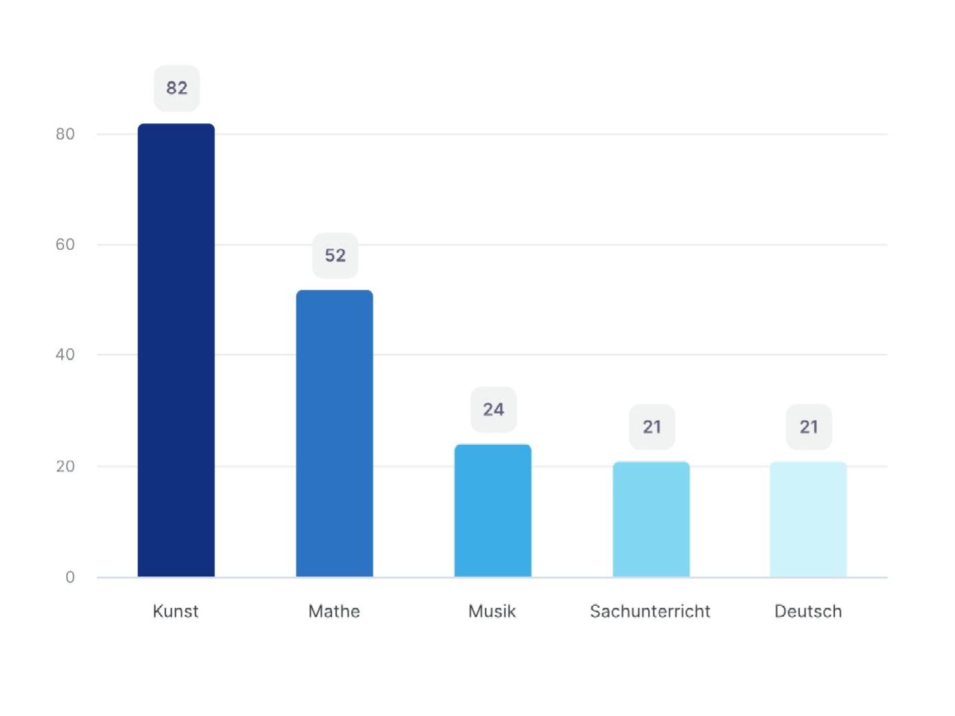Die Ergebnisse sind: 1. Kunst, 2. Mathe, 3. Musik und 4. Sachunterricht und Deutsch.